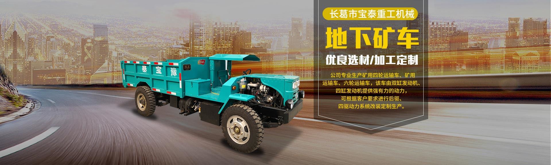 長(zhǎng)葛市寶泰重工機(jī)械有限公司坐落于全國(guó)百?gòu)?qiáng)縣(市)——長(zhǎng)葛市。南接魏都許昌,北依省會(huì)鄭州,距新鄭國(guó)際機(jī)場(chǎng)二十六公里,107國(guó)道與京珠高速?gòu)墓咀笥掖┻^(guò)。得天獨(dú)厚的交通環(huán)境為有識(shí)之士來(lái)公司指導(dǎo)合作提供了便利條件。 公司專(zhuān)注生產(chǎn)礦用四輪運(yùn)輸車(chē)、礦用運(yùn)輸車(chē)、六輪運(yùn)輸車(chē),該車(chē)由雙缸發(fā)動(dòng)機(jī)、四缸發(fā)動(dòng)機(jī)提供強(qiáng)有力的動(dòng)力,該產(chǎn)品適應(yīng)巷道、隧道、平原、山區(qū)、工地各種道路,通過(guò)能力強(qiáng),運(yùn)載馬力大,質(zhì)量可靠,可根據(jù)客戶(hù)要求進(jìn)行后驅(qū)、四驅(qū)動(dòng)力系統(tǒng)改裝定制生產(chǎn),深受各類(lèi)礦山實(shí)...